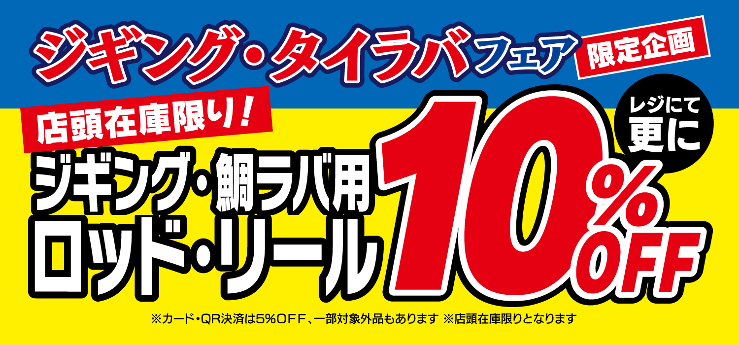 ジギング・タイラバ用ロッド・リールをレジにて更に10%OFF!