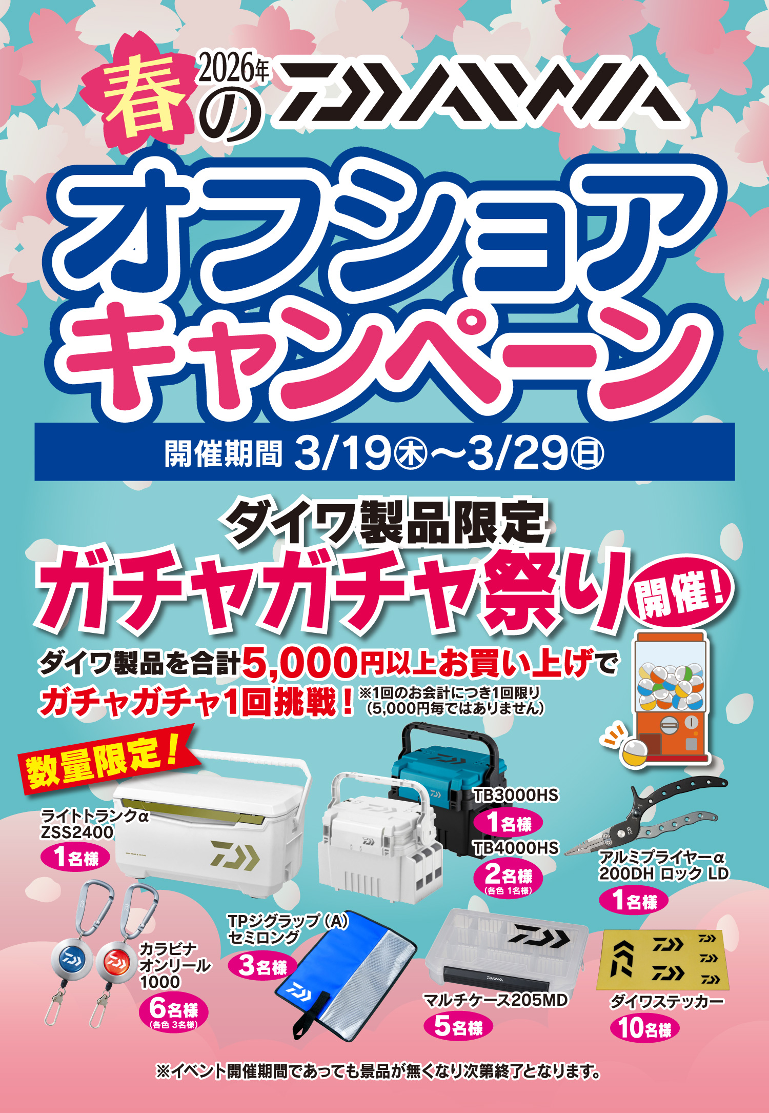 ダイワ製品を合計5000円以上お買い上げで、ガチャガチャに1回挑戦できる!!